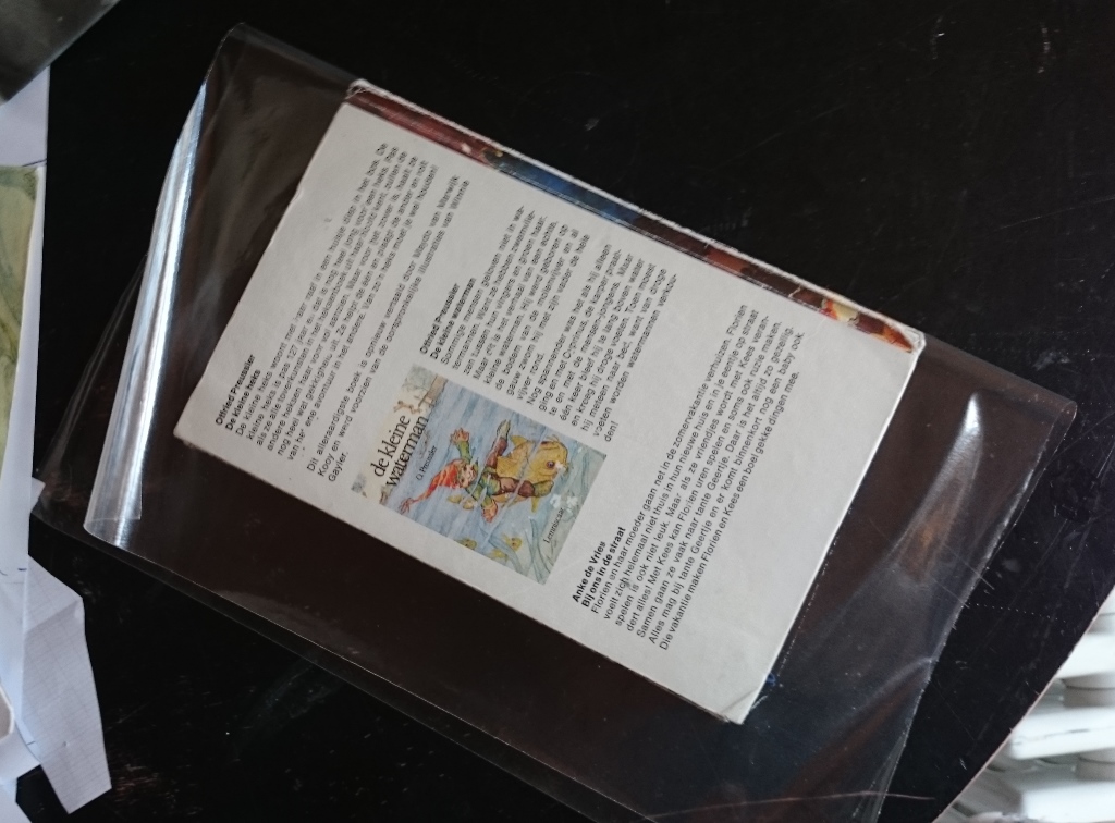 Ok, book is covered, next step. Wrap the book in kitchen-plastic-wrap like this, the front and the back. You might want to include a few of the first pages in the protection. I like to have the first pages as pages in the book. I would recommend at least one to cover and glue on eventual little mistakes later.